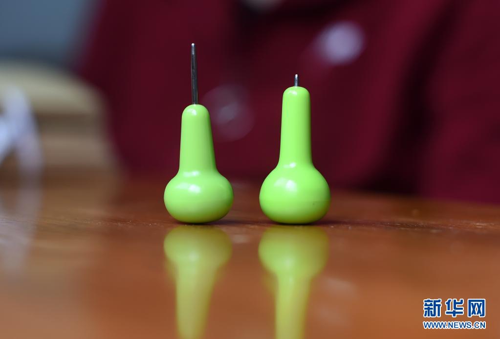 盲文筆筆頭是合金材質(zhì)、不易磨損,而葉景芬的一支盲文筆(右)因長期使用筆頭已磨損殆盡(攝于4月28日)。新華社記者 韓傳號(hào) 攝