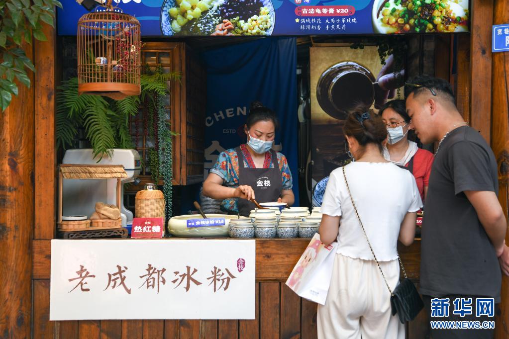 5月1日,游客在四川省成都市寬窄巷子景區(qū)購(gòu)買(mǎi)飲品。