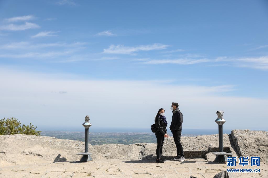 5月6日,人們在圣馬力諾城中欣賞風(fēng)景。