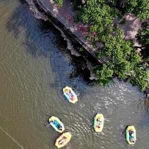 5月12日,游客在河北省邢臺市天河山景區(qū)漂流。
