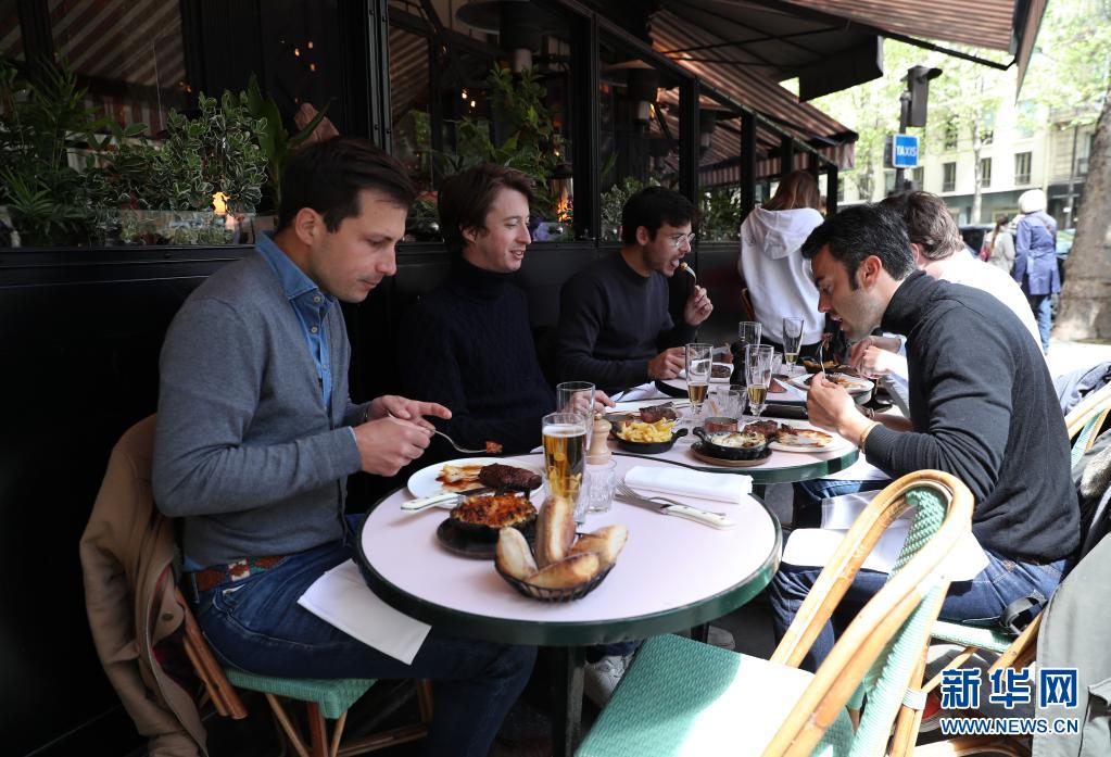 5月19日,人們?cè)诜▏?guó)巴黎一家餐廳用午餐。
