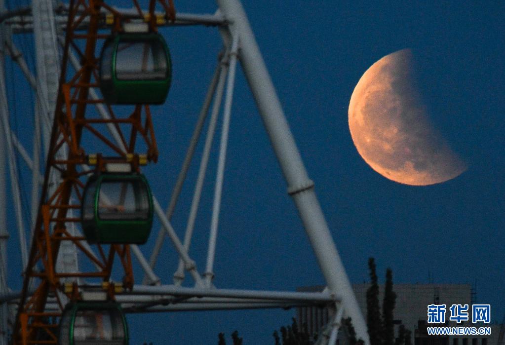 當(dāng)日,本年度“最大最圓月(也稱(chēng)‘超級(jí)月亮’)”與月全食(也稱(chēng)“紅月亮”)浪漫“邂逅”。