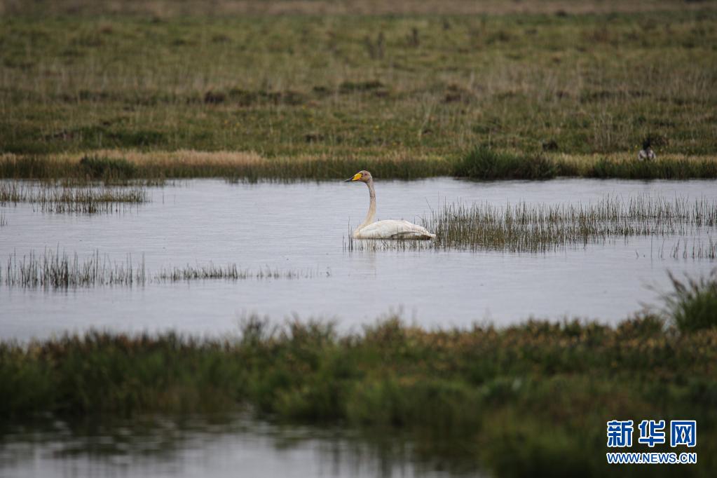 這是6月2日在甘肅省甘南藏族自治州碌曲縣尕海湖拍攝的國家二級(jí)保護(hù)動(dòng)物大天鵝。