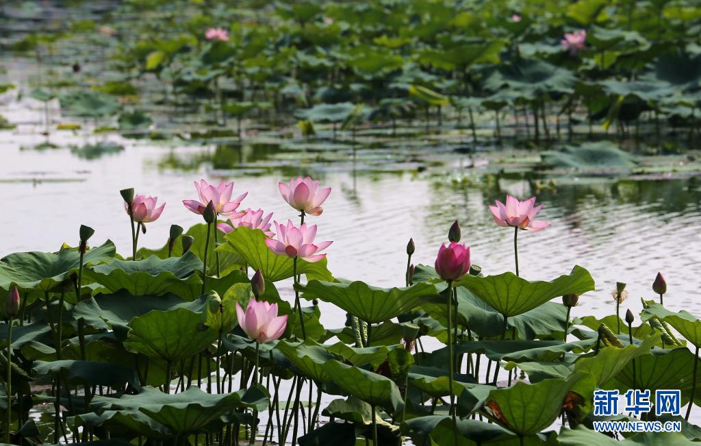 6月21日在江蘇省句容市赤山湖國(guó)家濕地公園拍攝的荷花。