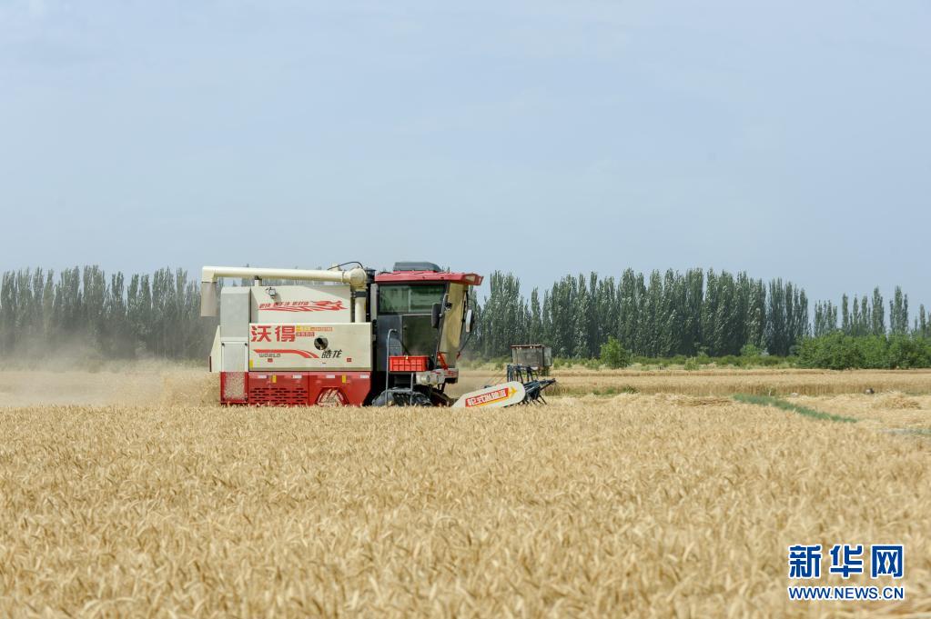 在新疆庫車市的麥田里,麥客阿地力·沙拉木的聯(lián)合收割機正在收割小麥(6月19日攝)。新華社記者 高晗 攝