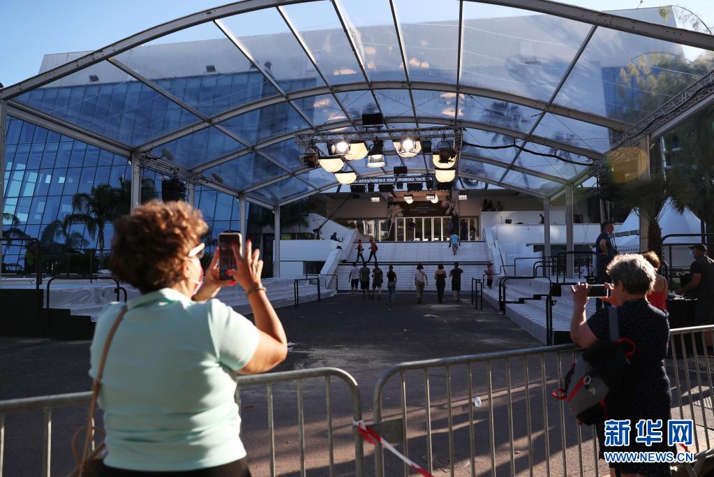 7月5日,人們?cè)诜▏?guó)戛納的電影宮外拍照。