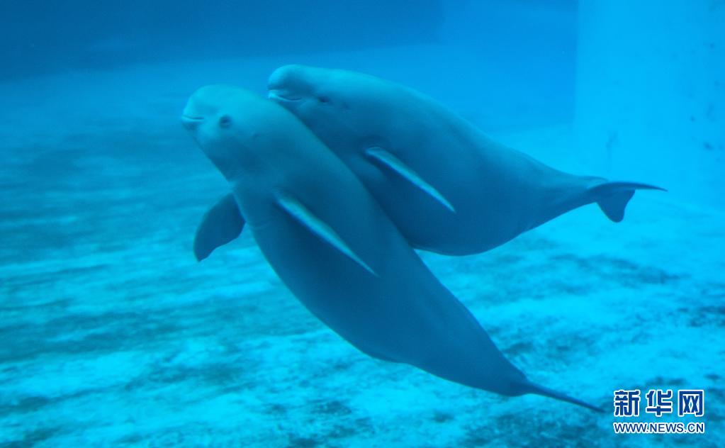 7月5日,江豚媽媽洋洋和小江豚YYC在水中游動(dòng)。新華社記者肖藝九攝