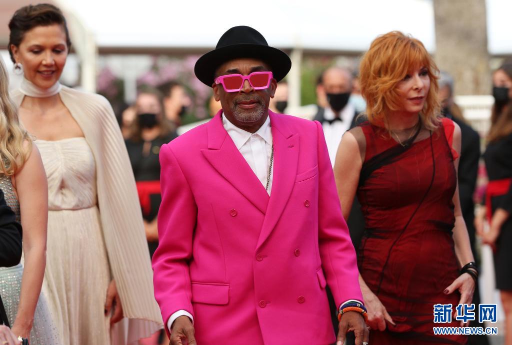 7月6日,第74屆法國戛納國際電影節(jié)主競賽單元評委會主席、美國導(dǎo)演和制片人斯派克·李(中)攜主競賽單元評委出席開幕式紅毯。