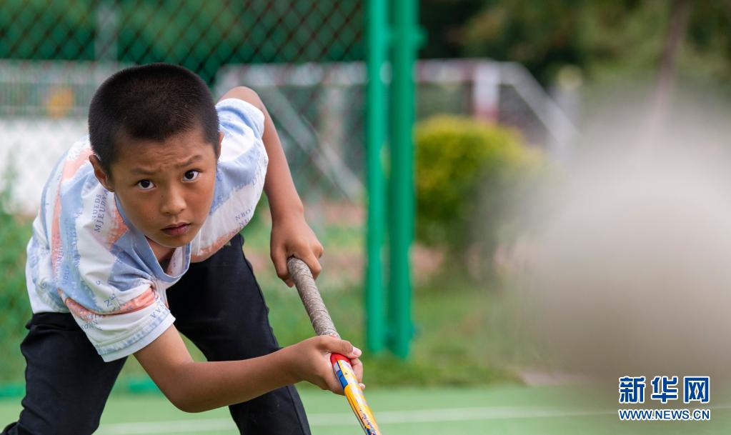 塔城市第二小學曲棍球隊的小隊員申世豪在訓練中(6月11日攝)。