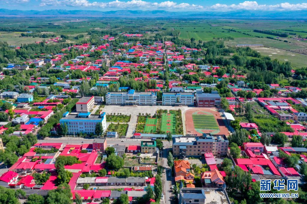 這是杜寶柱任教的新疆塔城地區(qū)塔城市第二小學(xué)(6月12日攝,無人機照片)。