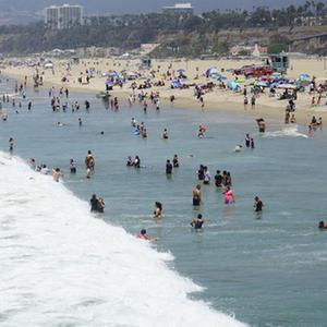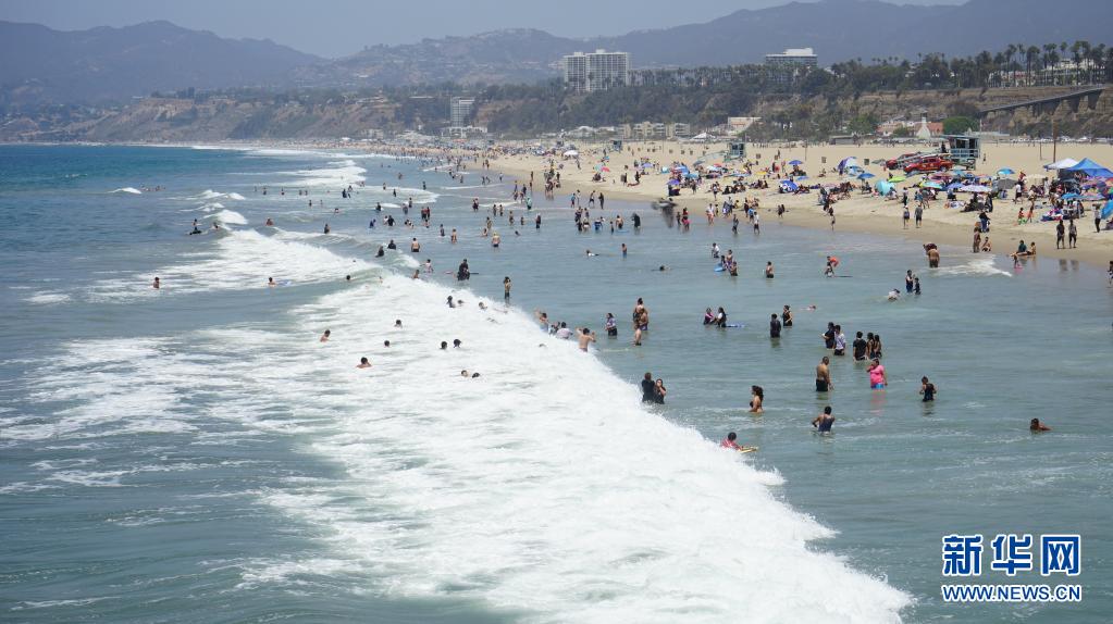 7月11日,人們在美國加利福尼亞州圣莫尼卡海灘消暑。