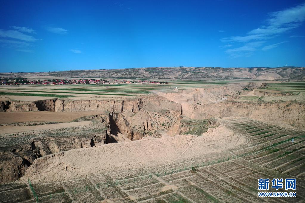 寧夏吳忠市同心縣預(yù)旺鎮(zhèn)“抗戰(zhàn)之聲”照片拍攝地(6月21日攝,無人機照片)。