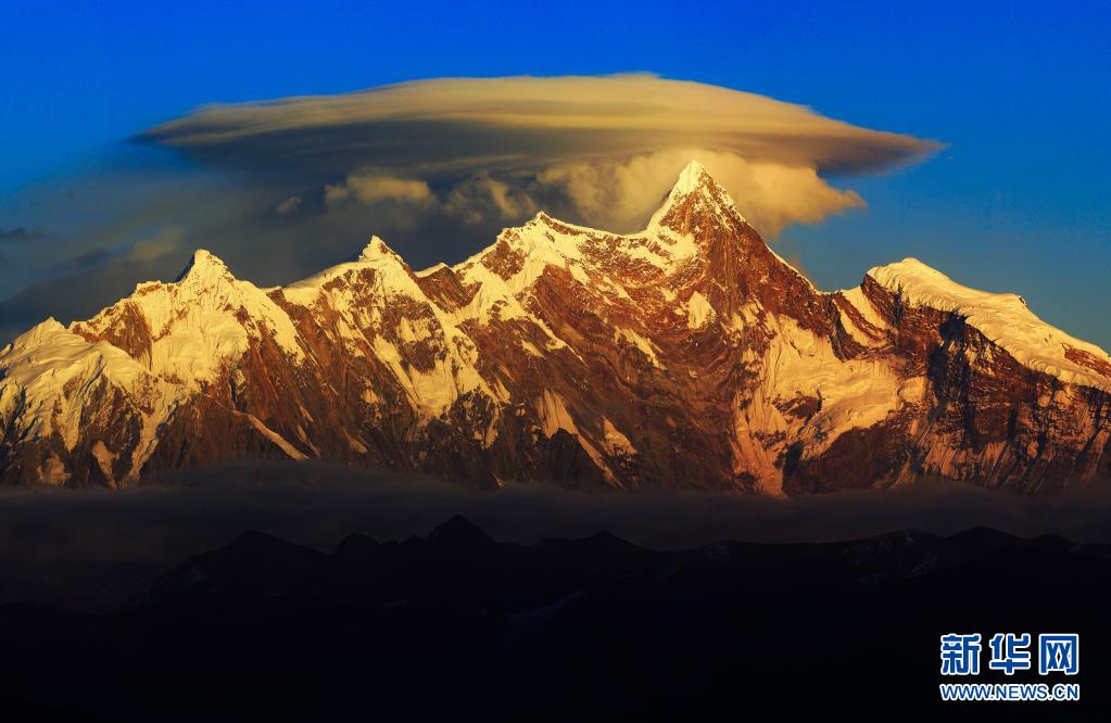 這是2017年12月24日拍攝的夕陽下的南迦巴瓦峰。