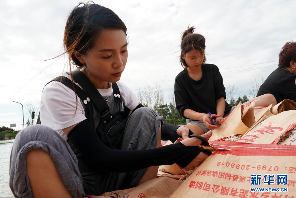 當(dāng)日,在河南省鶴壁市??h傅莊堤上,不少群眾自發(fā)前來(lái)和救援人員一起裝沙袋、運(yùn)沙袋,共筑堤壩。受持續(xù)強(qiáng)降雨影響,浚縣防汛形勢(shì)嚴(yán)峻,傅莊堤主要為??h縣城及26個(gè)村莊提供保護(hù)。新華社記者 李安 攝