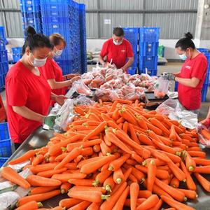 8月1日,在位于長沙市望城區(qū)的湖南高星物流園,蔬菜倉庫的工作人員在分揀胡蘿卜。
