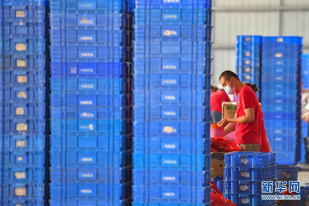 8月1日,在位于長(zhǎng)沙市望城區(qū)的湖南高星物流園,蔬菜倉庫的工作人員將蔬菜裝筐。