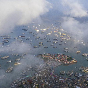 8月1日,浙江省舟山市大批漁船從沈家門漁港開赴東海海域進行捕撈作業(yè)(無人機照片)。