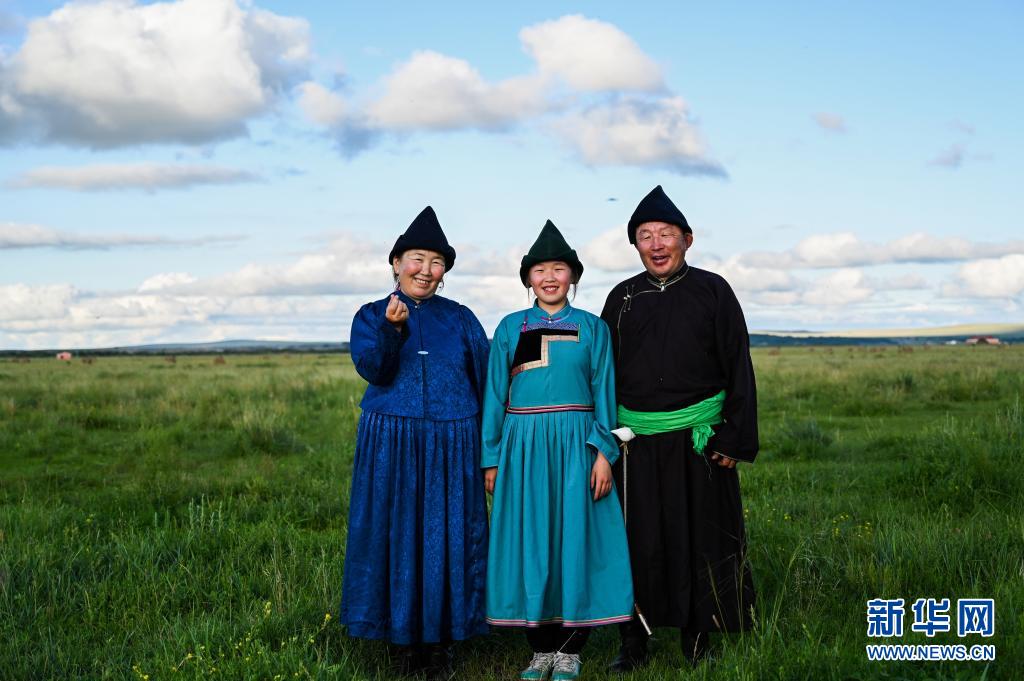 7月27日,吉布斯樂瑪(中)和父親嘎拉巴特爾(右)、母親其其格在草原上合影。