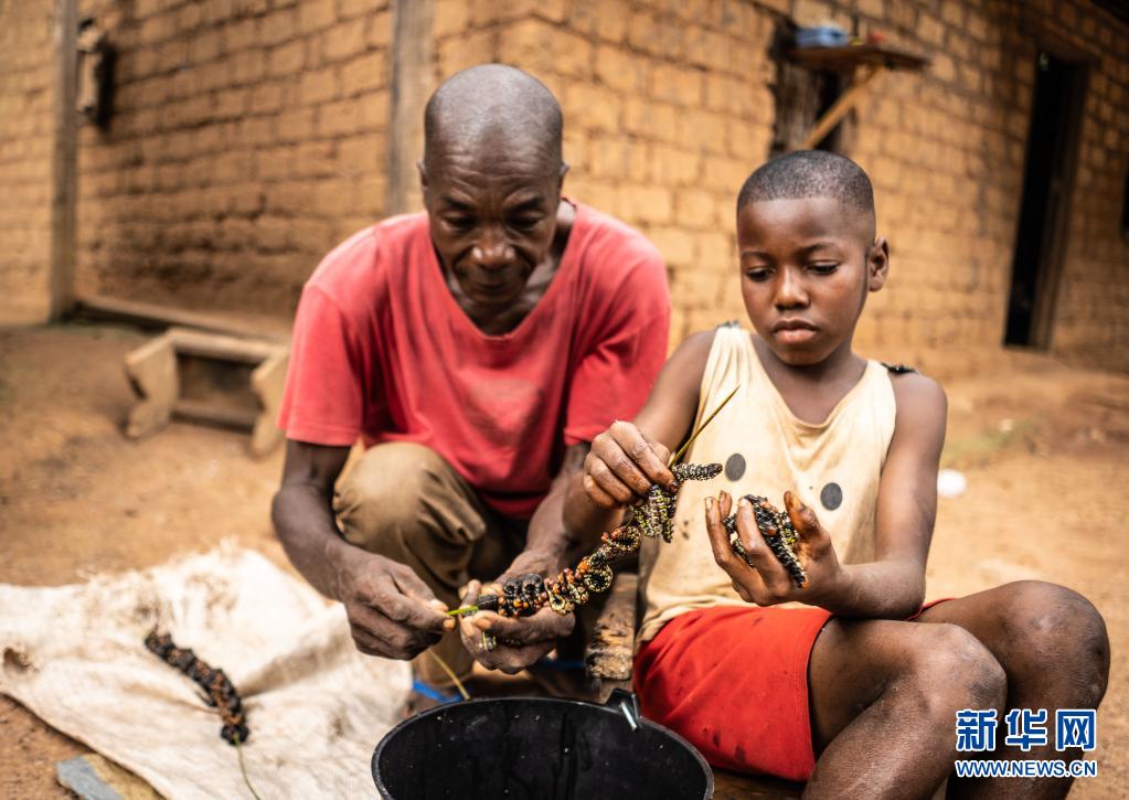 對于生活在糧食匱乏狀況下的居民,蟲子不僅意味著食物可以果腹,也是財富的來源。在雨季,來自首都班吉的經(jīng)銷商每天都騎著摩托車來到當(dāng)?shù)?,收購?dāng)?shù)鼐用褡淼拿x,然后賣到首都消費者手里。