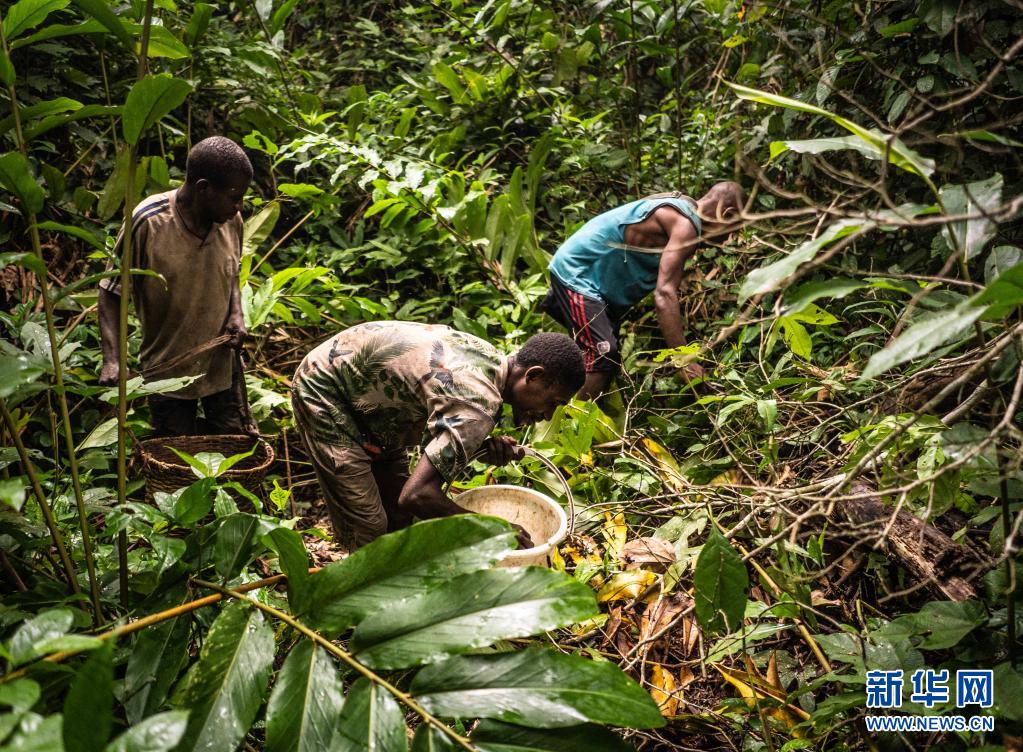 7月18日清晨,中非共和國洛巴耶省當?shù)氐馁赂衩兹嗽谏掷镎蚁x子。