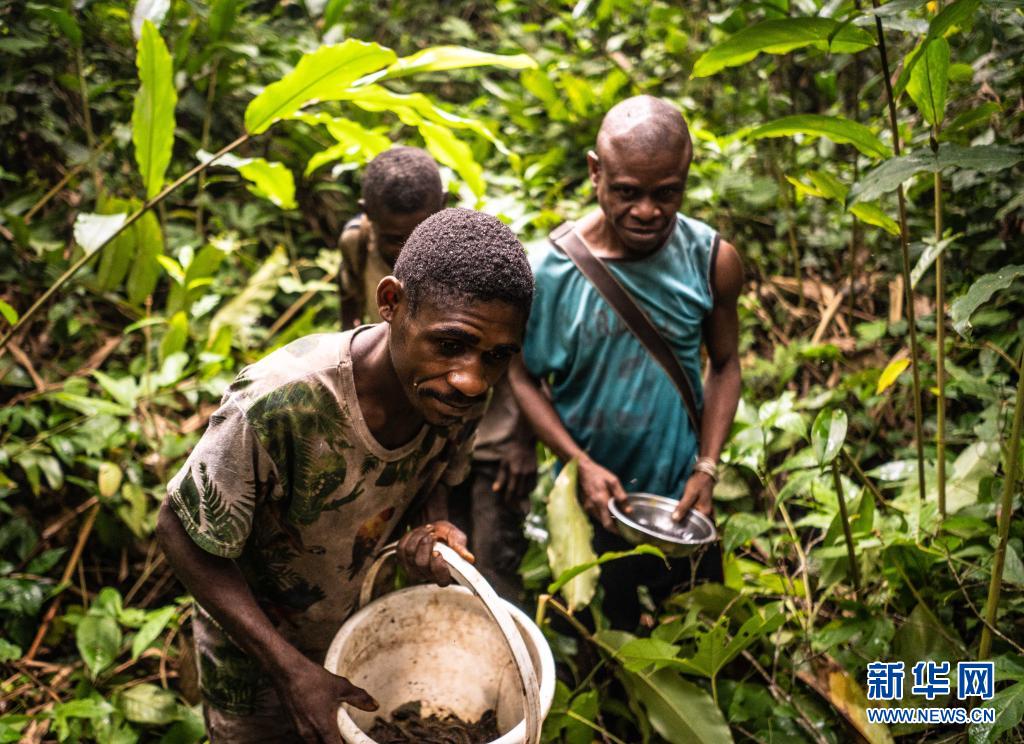 7月18日清晨,中非共和國洛巴耶省當(dāng)?shù)氐馁赂衩兹嗽谏掷镎蚁x子。