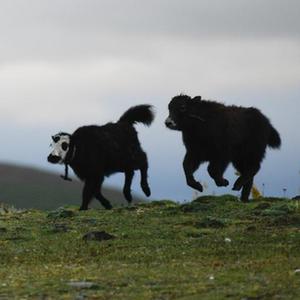 8月3日,在瑪沁縣當(dāng)洛鄉(xiāng)貢龍村的夏季草場(chǎng)上,牧民在拴牦牛。