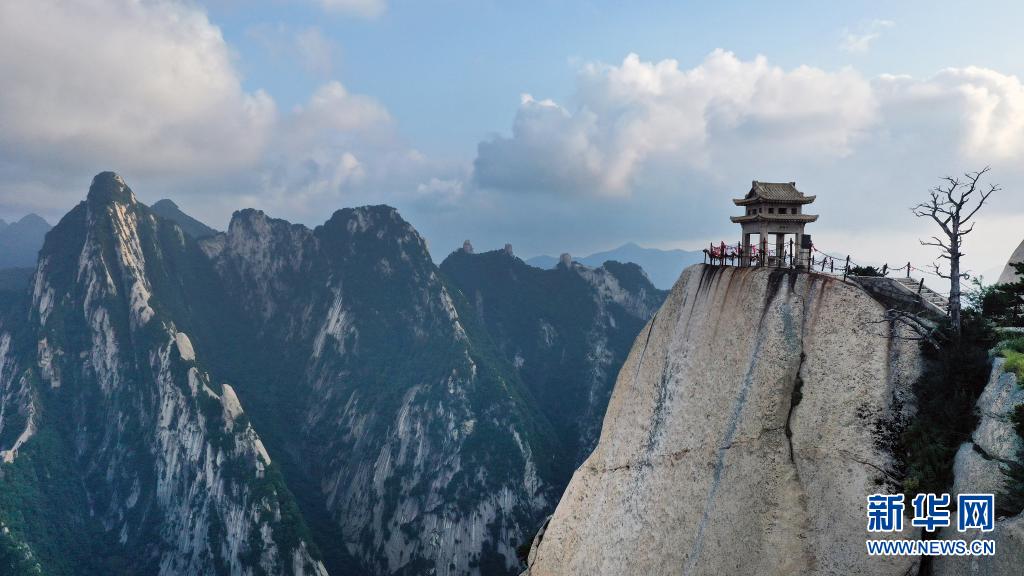 8月14日,西岳華山東峰下棋亭風(fēng)光(無人機照片)。