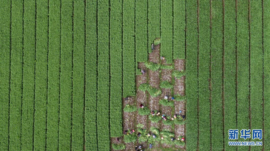 8月13日,在四川省阿壩藏族羌族自治州紅原縣刷經(jīng)寺鎮(zhèn)加當(dāng)村,當(dāng)?shù)厝罕娫谑崭罡咴n筍(無人機(jī)照片)。