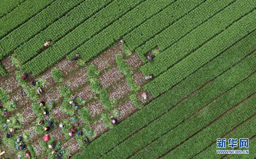 8月13日,在四川省阿壩藏族羌族自治州紅原縣刷經(jīng)寺鎮(zhèn)加當村,當?shù)厝罕娫谑崭罡咴n筍(無人機照片)。