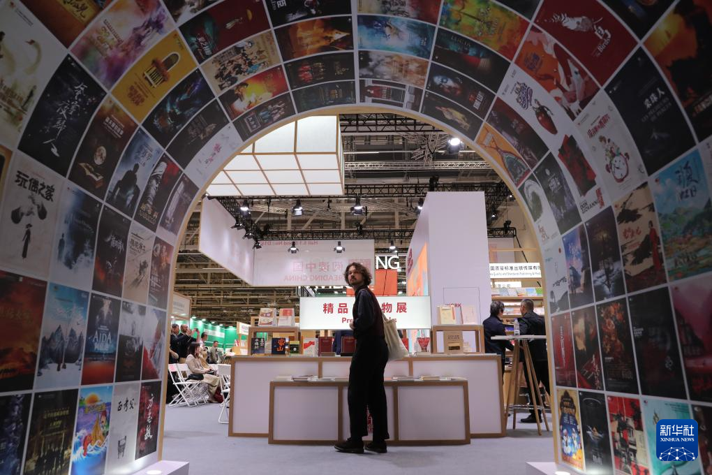 10月15日,一名读者在德国法兰克福书展中国联合展台参观。