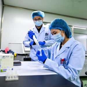 1月7日,锡林郭勒盟公安局刑侦支队刑事技术大队的许锐佳在锡林郭勒盟公安局实验室进行血样检测。