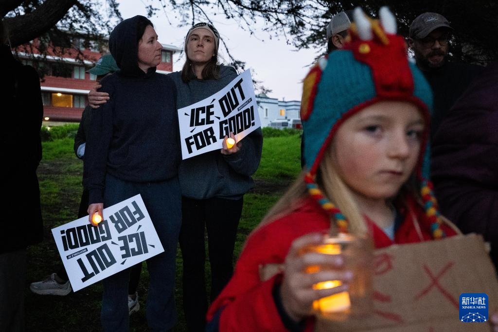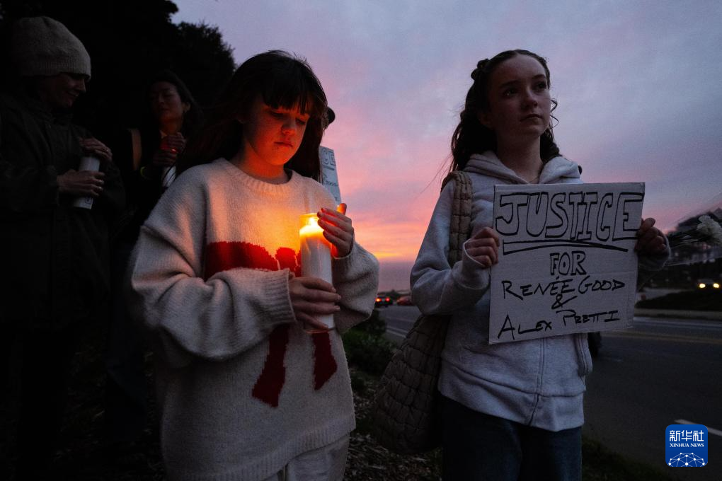 1月25日,在美国加利福尼亚州旧金山,人们为亚历克斯·普雷蒂举行烛光悼念活动。