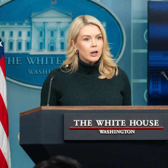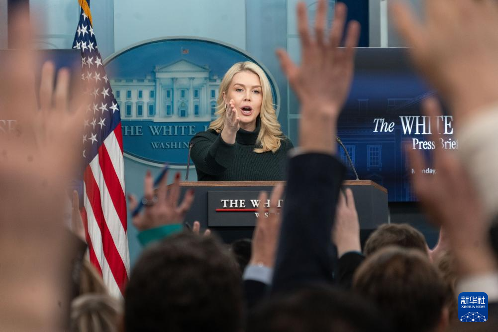 1月26日,在美国首都华盛顿白宫,白宫发言人莱维特出席记者会。