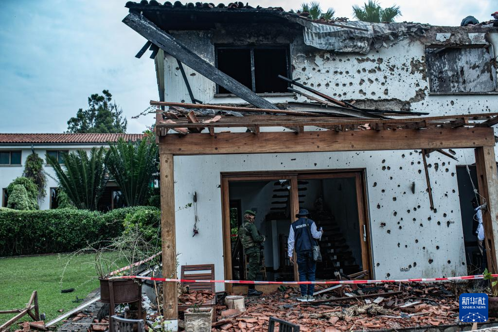 这是3月11日在刚果(金)戈马市拍摄的遭无人机袭击的建筑。