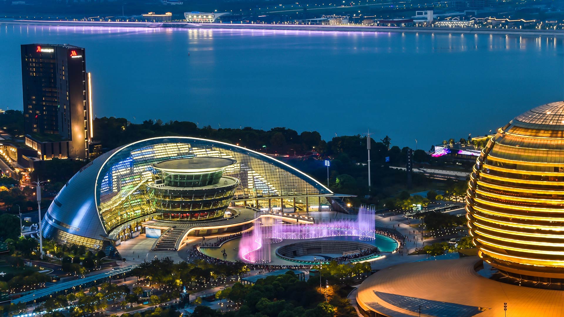 杭州大劇院燈光璀璨(8月31日攝)。 新華社記者 徐昱 攝