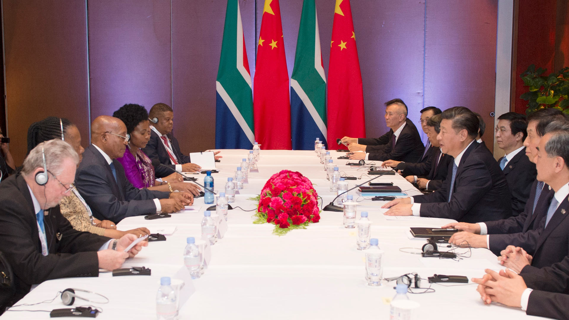 10月15日,國(guó)家主席習(xí)近平在印度果阿會(huì)見(jiàn)南非總統(tǒng)祖馬。新華社記者 蘭紅光 攝