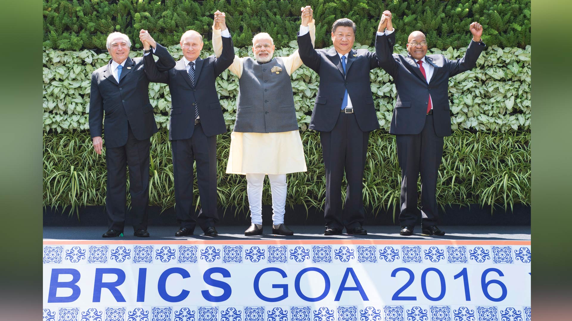 10月16日,金磚國(guó)家領(lǐng)導(dǎo)人第八次會(huì)晤在印度果阿舉行。中國(guó)國(guó)家主席習(xí)近平、印度總理莫迪、南非總統(tǒng)祖馬、巴西總統(tǒng)特梅爾、俄羅斯總統(tǒng)普京出席。這是5國(guó)領(lǐng)導(dǎo)人合影。新華社記者 謝環(huán)馳 攝