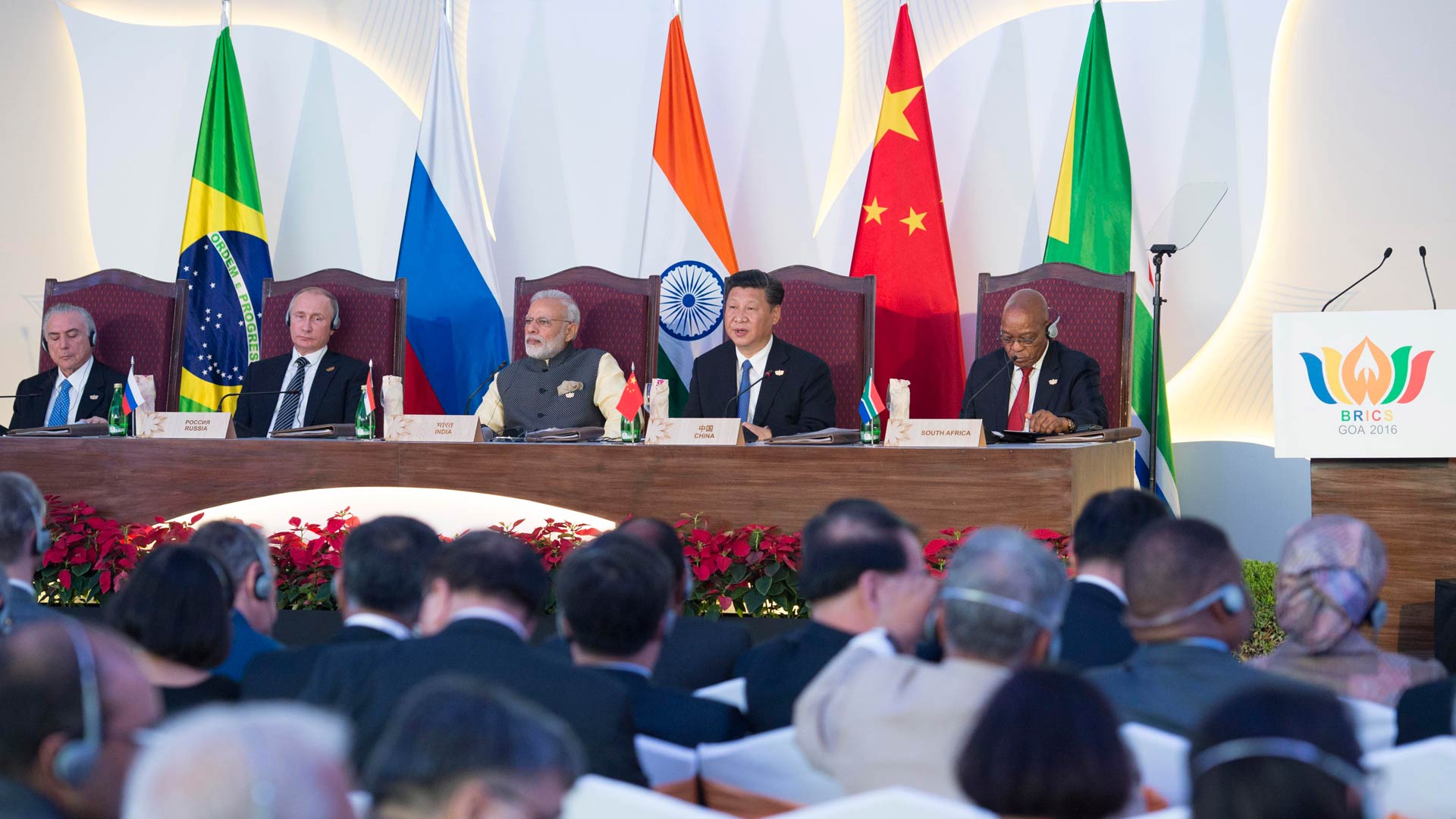 10月16日,金磚國(guó)家領(lǐng)導(dǎo)人第八次會(huì)晤在印度果阿舉行。中國(guó)國(guó)家主席習(xí)近平、印度總理莫迪、南非總統(tǒng)祖馬、巴西總統(tǒng)特梅爾、俄羅斯總統(tǒng)普京出席。習(xí)近平發(fā)表題為《堅(jiān)定信心 共謀發(fā)展》的重要講話。新華社記者 姚大偉 攝