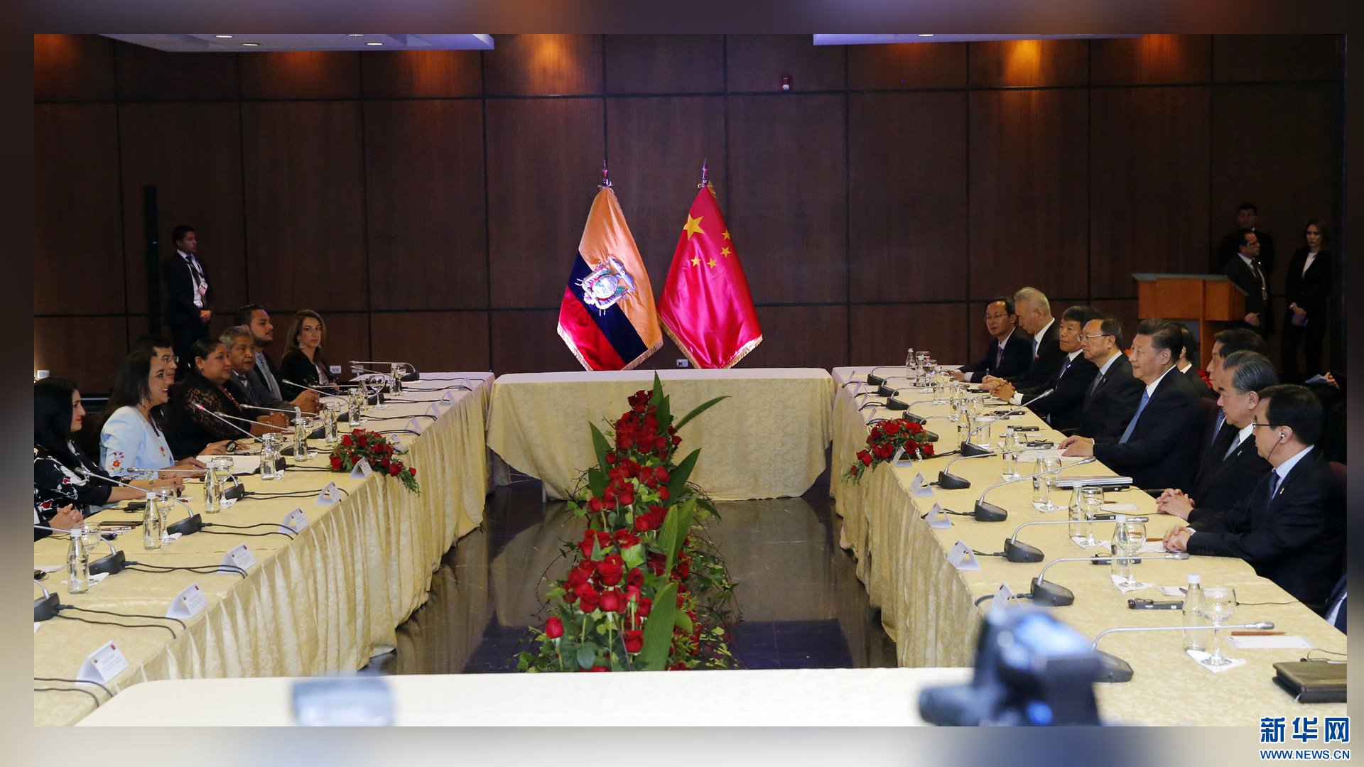 當?shù)貢r間11月17日,國家主席習近平在基多同厄瓜多爾總統(tǒng)科雷亞舉行會談。 新華社記者 蘭紅光 攝2016-11-18