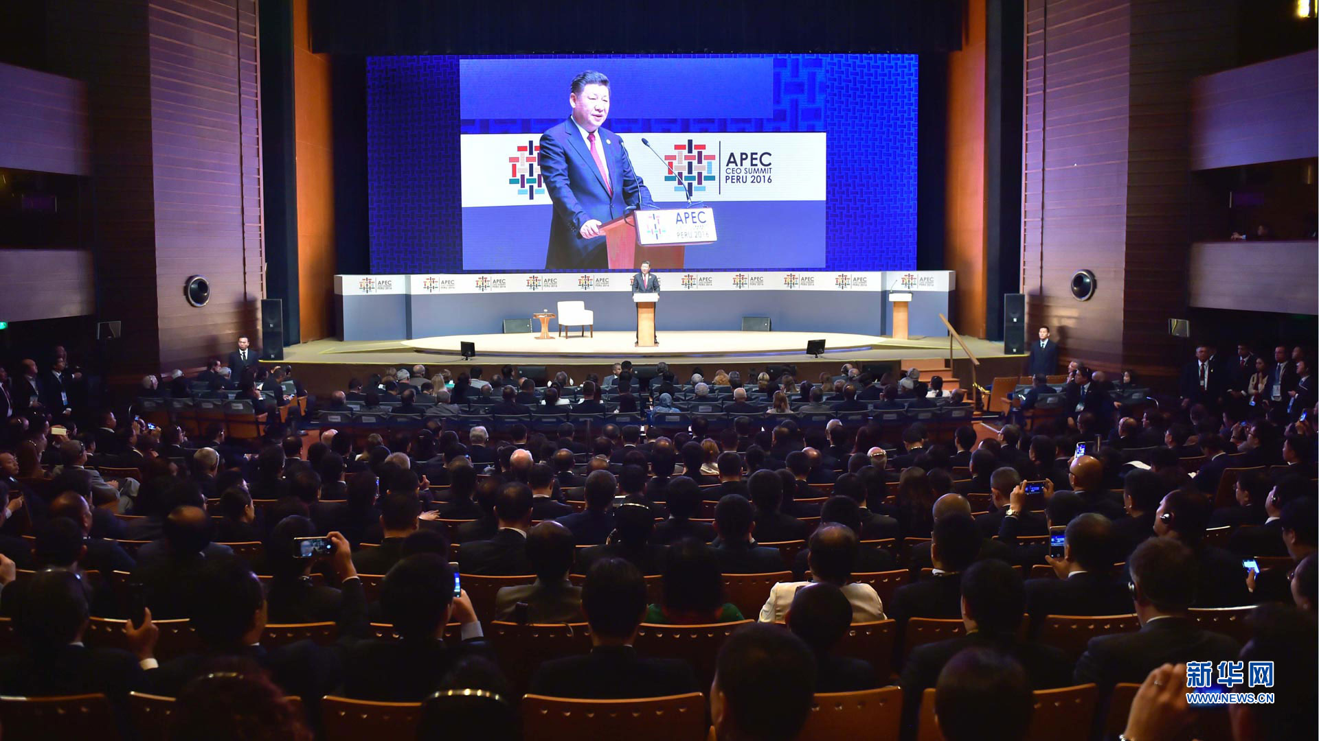 11月19日,2016年亞太經(jīng)合組織工商領(lǐng)導人峰會在秘魯利馬舉行。國家主席習近平應(yīng)邀出席并發(fā)表題為《深化伙伴關(guān)系 增強發(fā)展動力》的主旨演講。 新華社記者 蘭紅光 攝2016-11-20