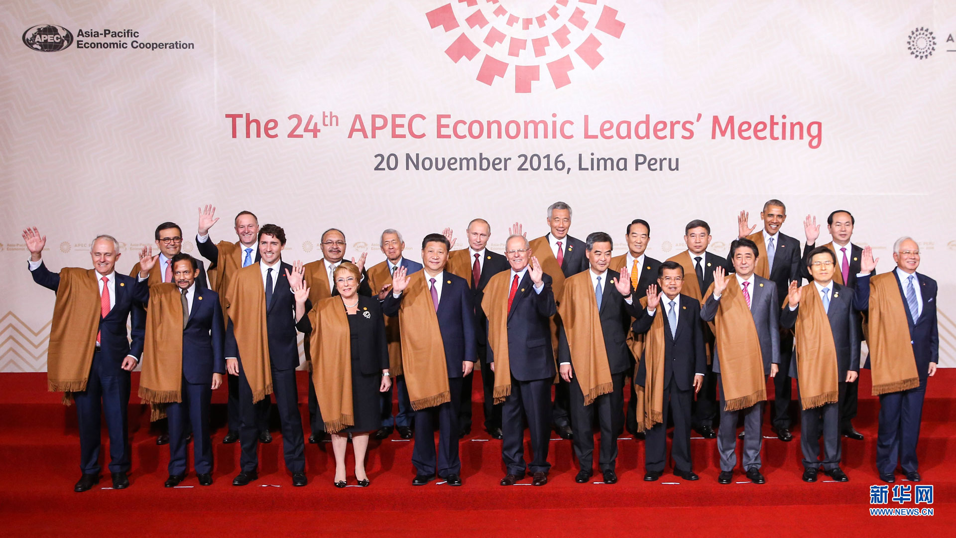 11月20日,亞太經(jīng)合組織第二十四次領(lǐng)導人非正式會議在秘魯利馬舉行。國家主席習近平出席并發(fā)表題為《面向未來開拓進取促進亞太發(fā)展繁榮》的重要講話。這是會議期間,國家主席習近平同其他亞太經(jīng)合組織成員經(jīng)濟體領(lǐng)導人、代表合影。 新華社記者 丁林 攝2016-11-21