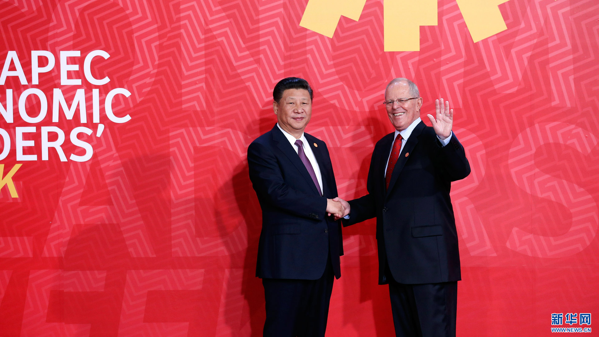 11月20日,亞太經(jīng)合組織第二十四次領(lǐng)導人非正式會議在秘魯利馬舉行。國家主席習近平出席并發(fā)表題為《面向未來開拓進取促進亞太發(fā)展繁榮》的重要講話。這是會議開始前,習近平受到秘魯總統(tǒng)庫琴斯基的熱情迎接。 新華社記者 龐興雷 攝2016-11-21