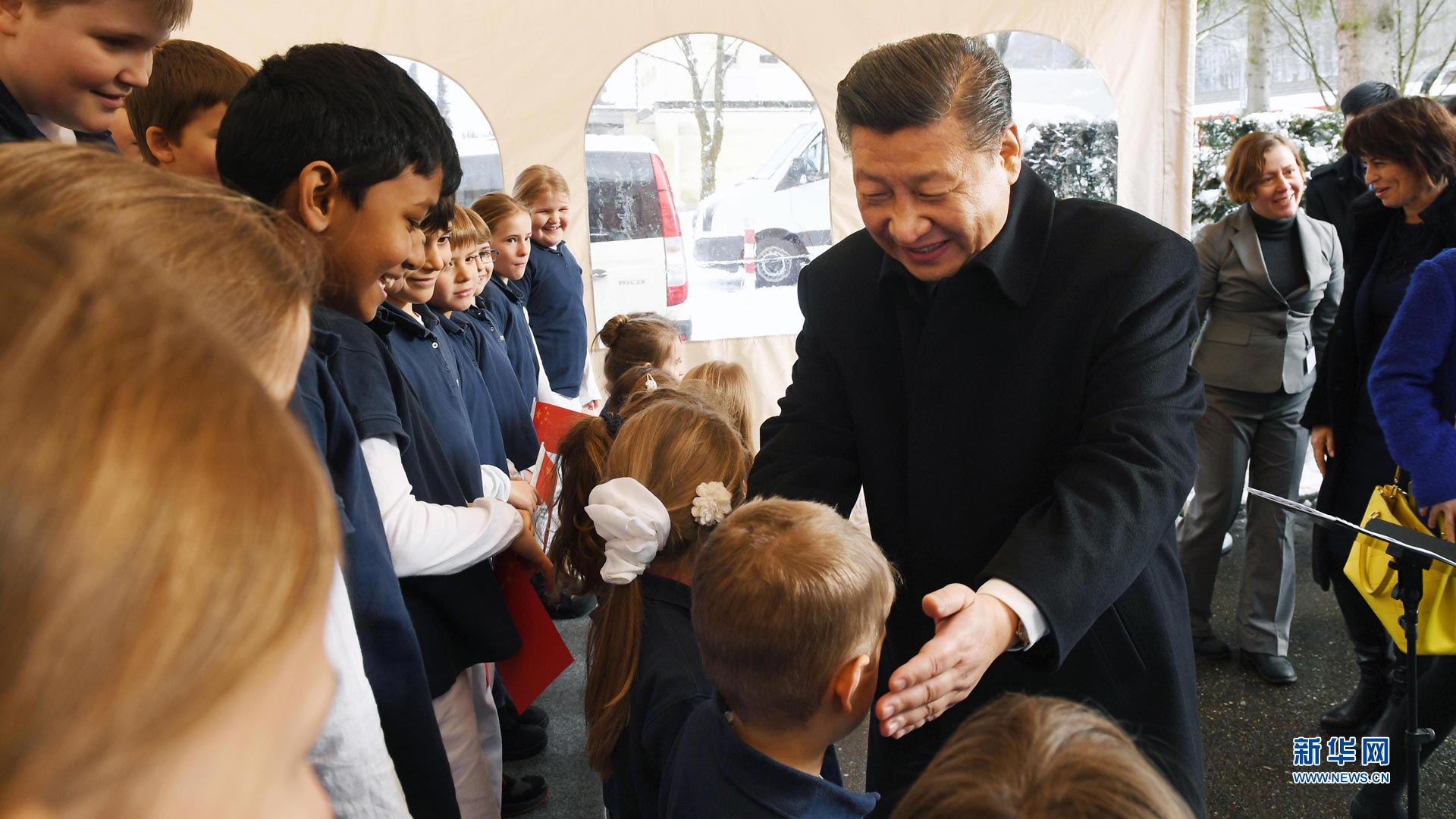 1月15日,國家主席習(xí)近平在瑞士聯(lián)邦主席洛伊特哈德陪同下,乘坐瑞士政府專列自蘇黎世前往瑞士首都伯爾尼。在專列行進(jìn)過程中,習(xí)近平和夫人彭麗媛受洛伊特哈德主席夫婦邀請(qǐng),在輕松愉快的氛圍中品茶暢談。這是習(xí)近平在伯爾尼克爾薩茨火車站觀看瑞士童聲合唱團(tuán)表演后,與合唱團(tuán)的小演員交流。 新華社記者饒愛民攝2017-01-16
