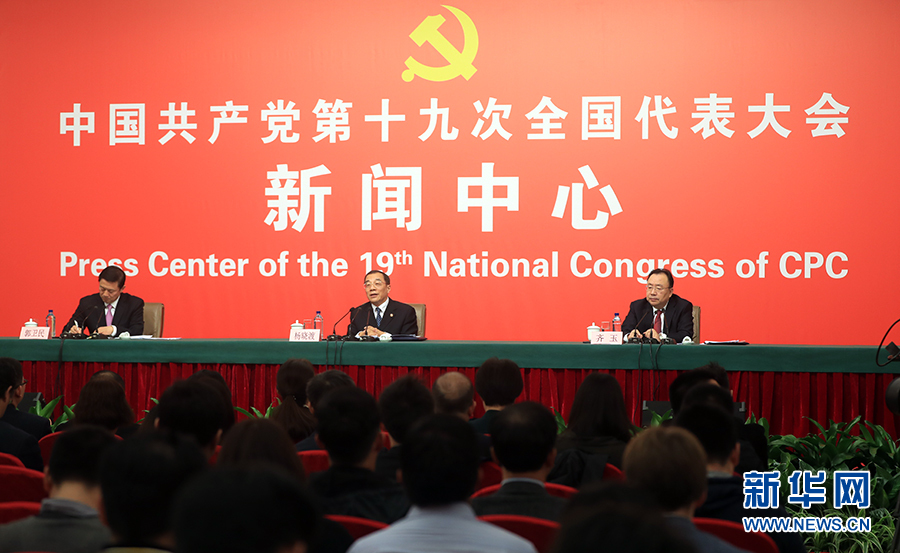??? 10月19日,十九大新聞中心舉行記者會(huì),邀請(qǐng)中紀(jì)委、中組部負(fù)責(zé)人介紹黨的建設(shè)和全面從嚴(yán)治黨相關(guān)情況。圖為記者會(huì)現(xiàn)場(chǎng)。新華網(wǎng) 郝廣鵬攝