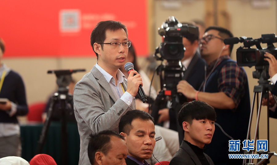 10月19日,十九大新聞中心舉行記者會,邀請中紀委、中組部負責人介紹黨的建設和全面從嚴治黨相關情況。圖為中國日報、中國日報網(wǎng)記者提問。新華網(wǎng) 郝廣鵬攝