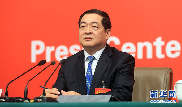 10月19日,十九大新聞中心舉辦集體采訪,邀請工信和通訊領(lǐng)域代表談走新型工業(yè)化道路。圖為山東省經(jīng)濟(jì)和信息化委員會(huì)黨組書記、主任錢煥濤。新華網(wǎng) 郝廣鵬攝