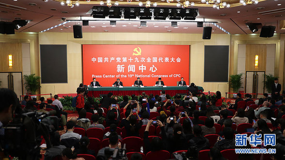 10月20日,十九大新聞中心舉行記者會,邀請中宣部、中央文明辦、文化部、新聞出版廣電總局相關(guān)負(fù)責(zé)人介紹加強(qiáng)思想道德和文化建設(shè)情況,并回答記者提問。圖為記者會現(xiàn)場。新華網(wǎng) 郝廣鵬 攝