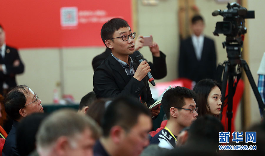 ??? 10月20日,十九大新聞中心舉辦集體采訪活動(dòng),主題為“文化發(fā)展開(kāi)創(chuàng)新局面”。圖為光明日?qǐng)?bào)融媒體記者提問(wèn)。新華網(wǎng) 翟子赫攝