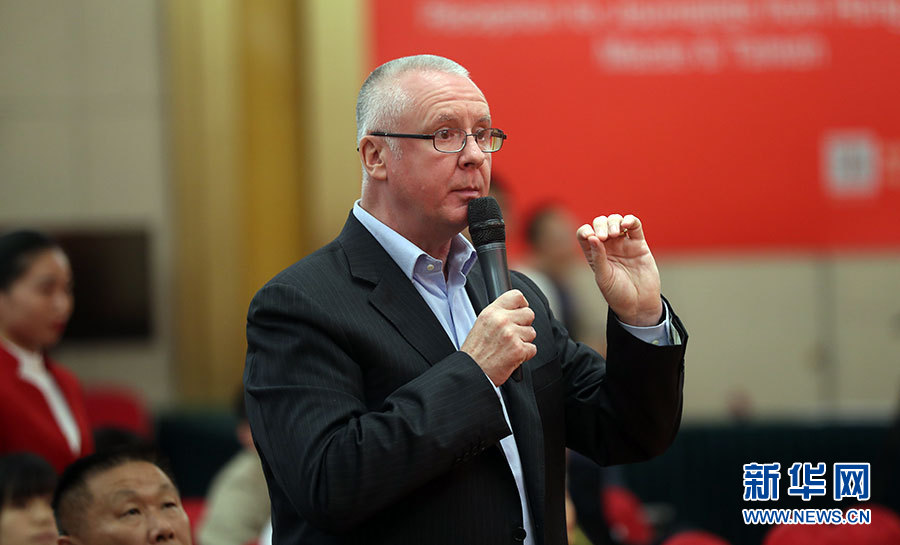10月20日,十九大新聞中心舉辦集體采訪活動,主題為“實施創(chuàng)新驅(qū)動發(fā)展戰(zhàn)略”。圖為中國國際電視臺記者提問。新華網(wǎng) 郝廣鵬攝
