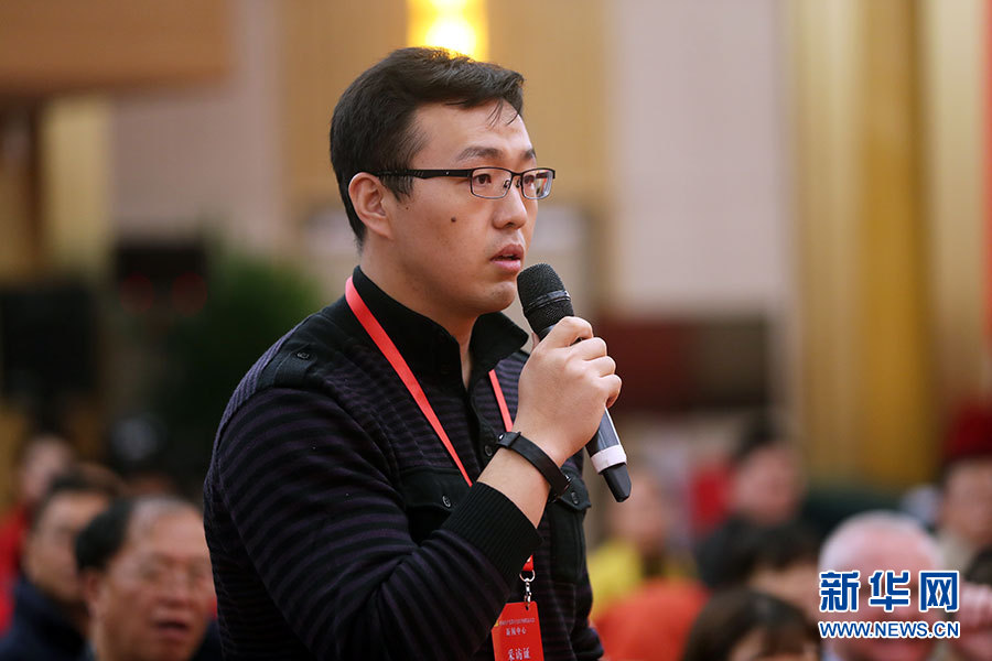 ??? 10月20日,十九大新聞中心舉辦集體采訪活動,主題為“實施創(chuàng)新驅(qū)動發(fā)展戰(zhàn)略”。圖為中國建材報記者提問。新華網(wǎng) 郝廣鵬攝